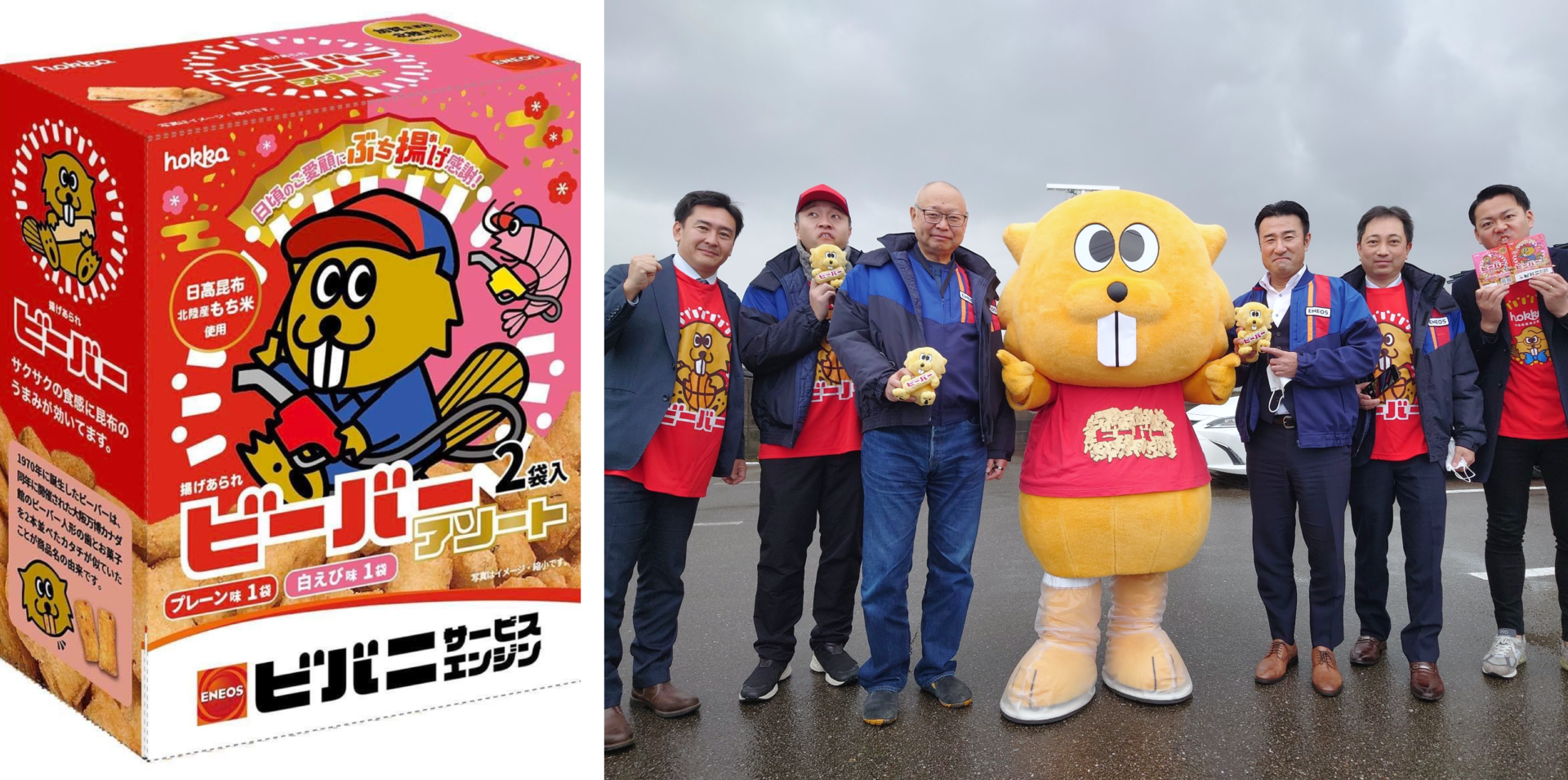 | Tad | 「白えびビーバー」が大ブレイクしたというお話でしたが、他にも「のどぐろビーバー」があって、北陸でしかその2つは売らないんだということでした。他にもカレー味とかいろいろバリエーションが出ていますが、「炎鵬ちゃんこビーバー(ピリ辛塩バター風味)」という商品を発見しました。こちらは炎鵬関とのコラボですが、いったいどういう経緯でできたものなんでしょうか? |